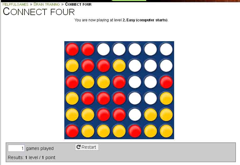 The classic game four in a row is a a really popular game for both children and adults. Now you can play this game here on Helpful Games in the category Brain training and you have ten levels to choose from.